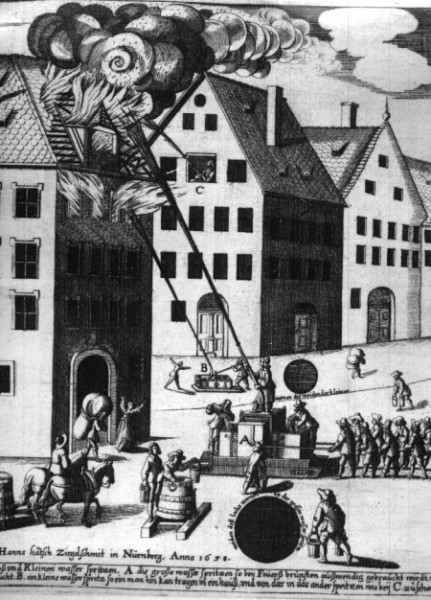 Feuerspritze 1655 Kupferstich. Bildrechte: Germanisches Nationalmuseum Nürnberg